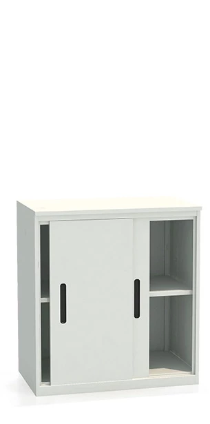 - Металлический шкаф выполнен в светло-сером цвете (RAL 7035), что подчеркивает его элегантный внешний вид.