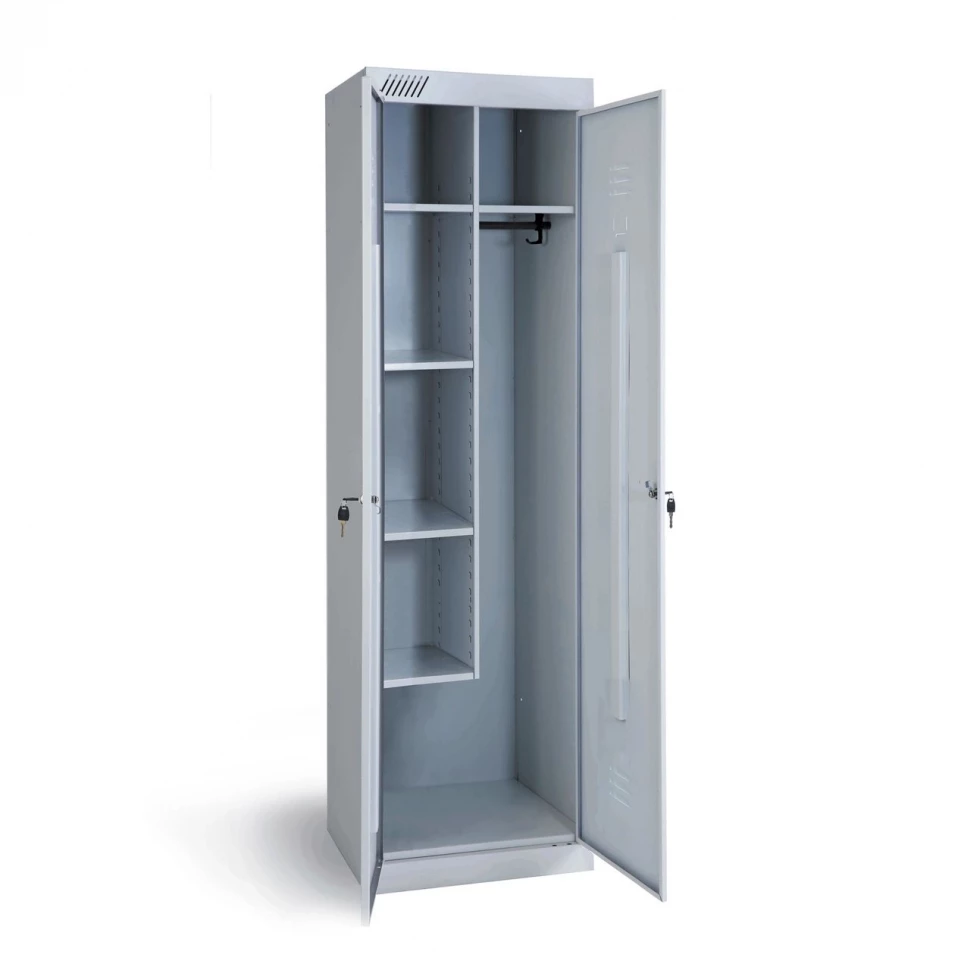 Параметр Значение Высота, мм 1850 Ширина, мм 530 Глубина, мм 500 Вес: 28 кг Цвет: Cветло-серый (RAL 7035) Тип покрытия: Порошковое Гарантия 1 год Производство Металл-Завод (Россия) Тип замка Два ключевых Количество дверей (секций) 2 - Документация