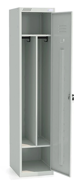 - Комплектуется вертикальной перегородкой, общей полкой для головных уборов, полкой для обуви, 4 крючками, 2 перекладинами, 1 замком повышенной секретности.