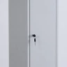 - Цветовое исполнение — светло-серый (RAL 7035), что позволяет легко вписать шкаф в любой интерьер.