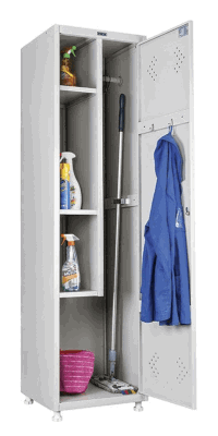 - Шкафы для уборочного инвентаря. Шкафы специально предназначены для хранения уборочного оборудования, моющих средств и других предметов, необходимых для поддержания чистоты.