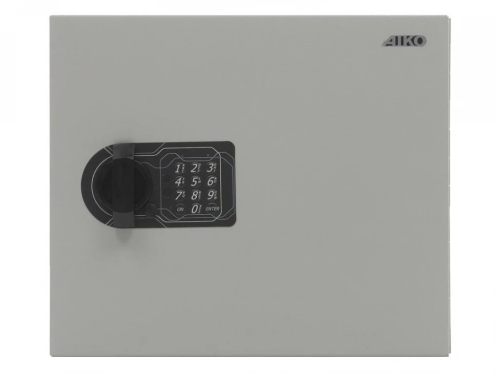 Параметр Значение Высота, мм 300 Ширина, мм 355 Глубина, мм 66 Вес: 3.3 кг Модель KEY Тип установки настенный Тип замка Кодовый электронный Производство AIKO Цвет: cерый полуматовый (RAL 7038) Тип покрытия: Порошковое Вместимость 35 ключей Гарантия 1 год - Документация