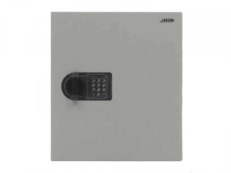 Параметр Значение Высота, мм 400 Ширина, мм 355 Глубина, мм 66 Вес: 4.2 кг Модель KEY Тип установки настенный Тип замка Кодовый электронный Производство AIKO Цвет: cерый полуматовый (RAL 7038) Тип покрытия: Порошковое Вместимость 55 ключей Гарантия 1 год - Документация