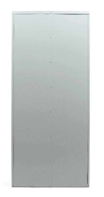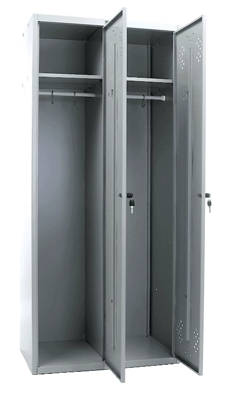- Шкаф состоит из двух секций, каждая из которых имеет собственную дверь и замок для удобства использования.