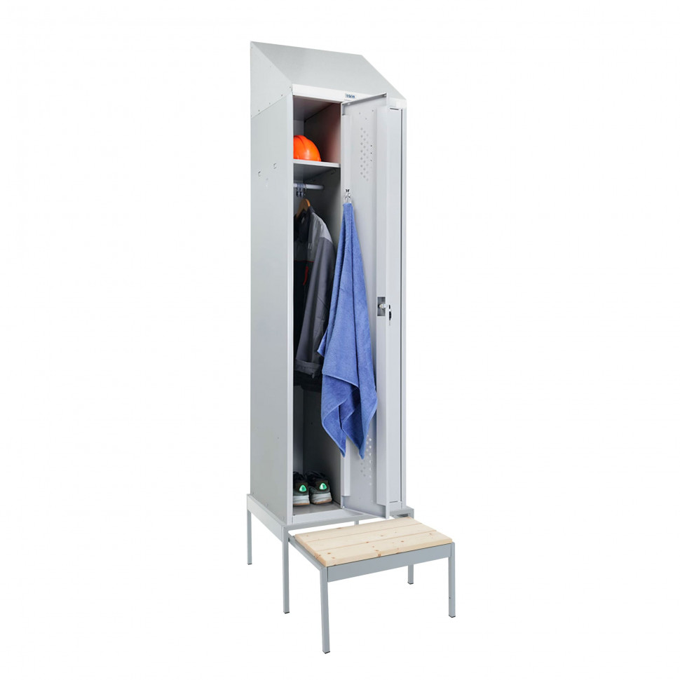Шкаф LS-21-60 с выдвижной скамьей и наклонной крышей — идеальный вариант для хранения рабочей одежды и личных вещей в офисах, на складах и в фитнес-центрах. Эта модель, изготовленная компанией «ПРАКТИК», сочетает в себе функциональность и современный дизайн, предлагая пользователю качественные решения для организации пространства. Комплект с выдвижной скамьей делает его особенно удобным, позволяя комфортно переодеваться и отдыхать.