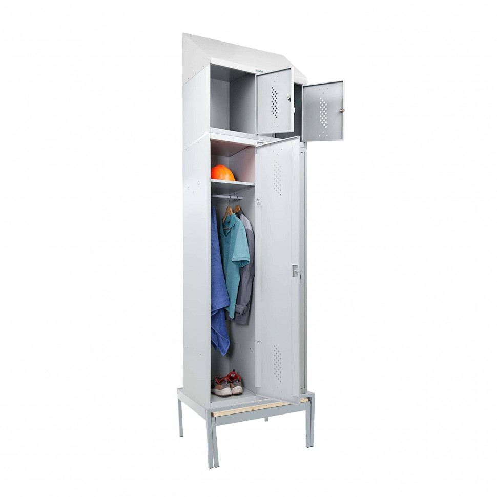 Шкаф LS-21-80 с выдвижной скамьей и наклонной крышей от бренда ПРАКТИК – это функциональное и стильное решение для хранения одежды в помещениях различного назначения. Он идеально подойдет для спортзалов, производственных предприятий, офисов и учреждений, где необходима удобная система для хранения личных вещей и обеспечения безопасности. Металлическая конструкция шкафа обеспечивает надежность и долгий срок службы, а стильный серый полуматовый цвет (RAL 7038) гармонично впишется в любой интерьер.