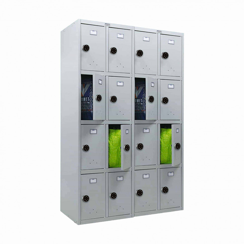 - 16 секций с распашными дверями позволяют удобно распределить вещи и обеспечить легкий доступ к ним.