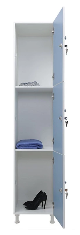 Шкаф для раздевалок WL 13-40 голубой/белый станет незаменимым элементом для обустройства помещений, где необходимо хранение одежды и инвентаря. Эта модель, высоко оцененная в спортивных и образовательных учреждениях, предлагает три секции, каждая из которых закрывается на ключ. Стильный голубой и белый цвет шкафчика не только привлекает внимание, но и гармонично вписывается в любой интерьер.