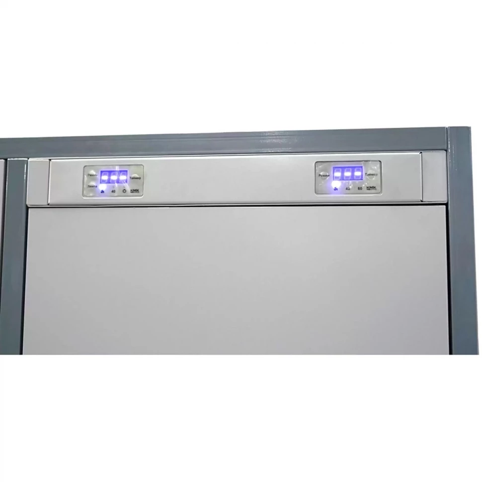 - Первый отдел предназначен для одежды, оснащен полкой для мелких вещей и перекладиной для вешалок, позволяя сушить до восьми комплектов одновременно.