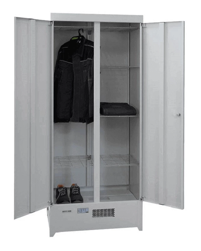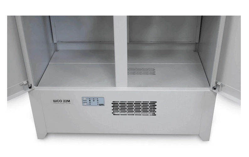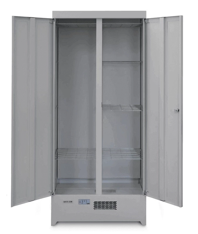 Шкаф сушильный ШСО-22М – это оптимальное решение для сушки одежды, спецодежды и обуви. Его размеры 2065х804х512 мм и вес 69 кг делают его достаточно вместительным, но при этом не громоздким для использования в различных помещениях. Этот металлический шкаф отлично подойдет для применения на стройплощадках, в ледовых дворцах, горнолыжных базах, а также в детских садах.
