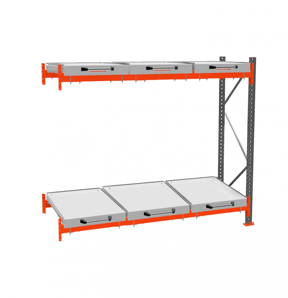 Стеллаж с выкатными платформами ДиКом 2000х2700х1000 на 2 яруса доп. секция