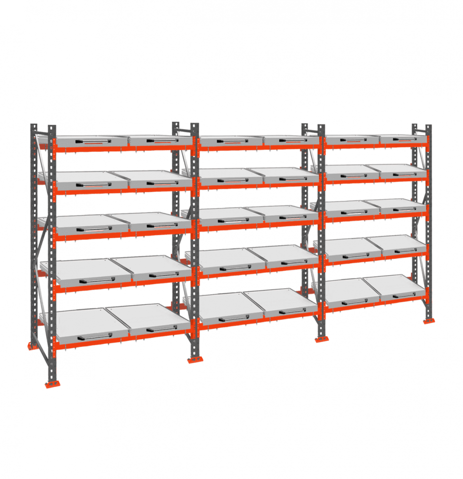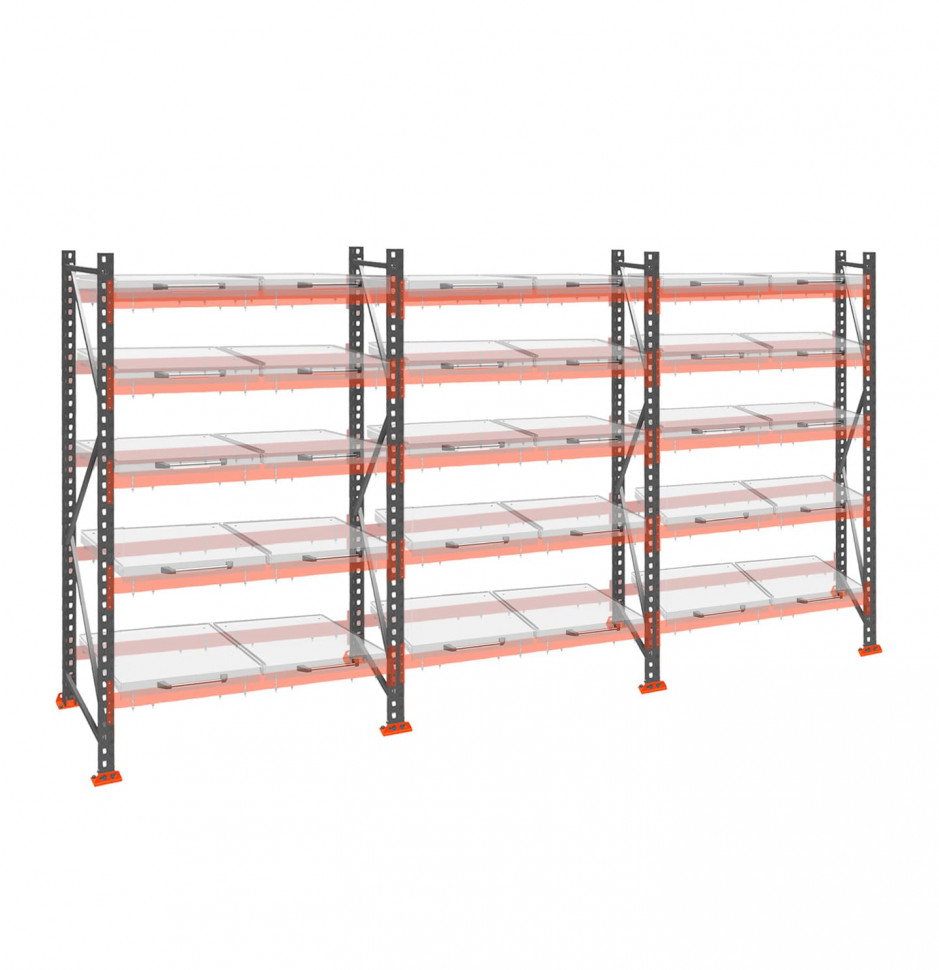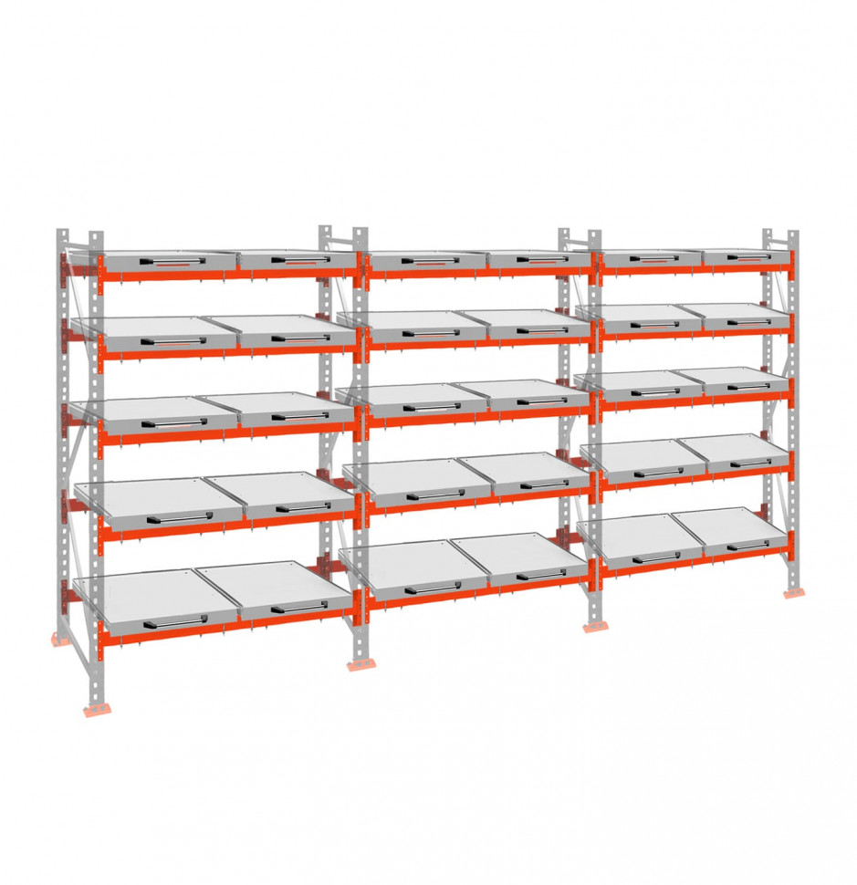 Стеллаж с выкатными платформами ДиКом 2500х5400х1000 на 5 ярусов П-90