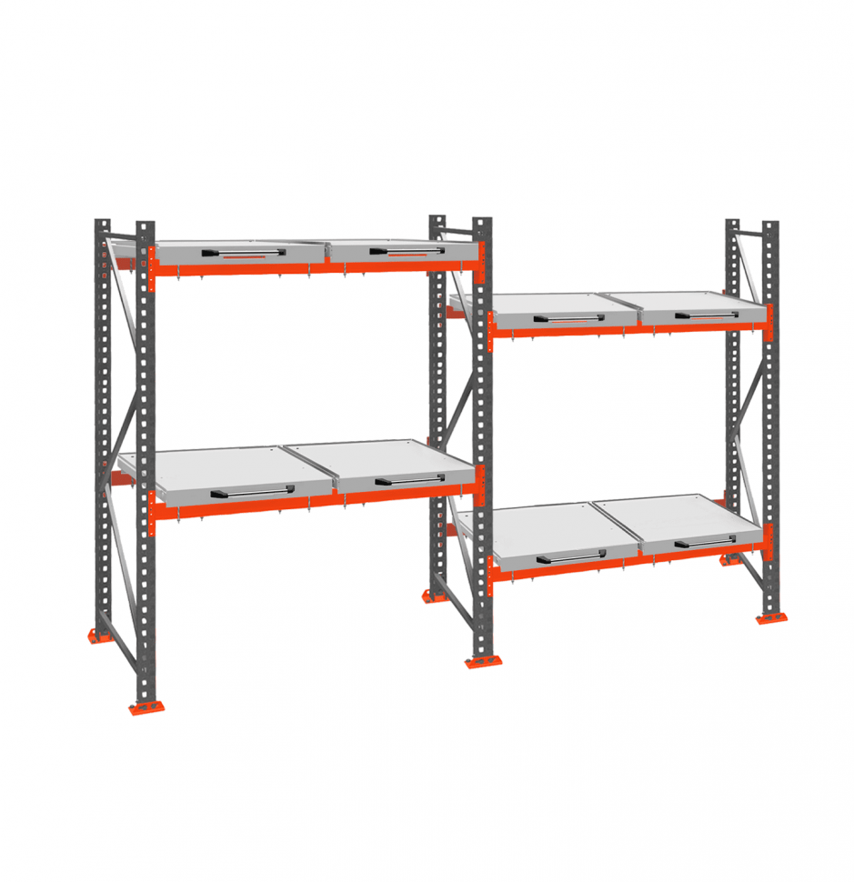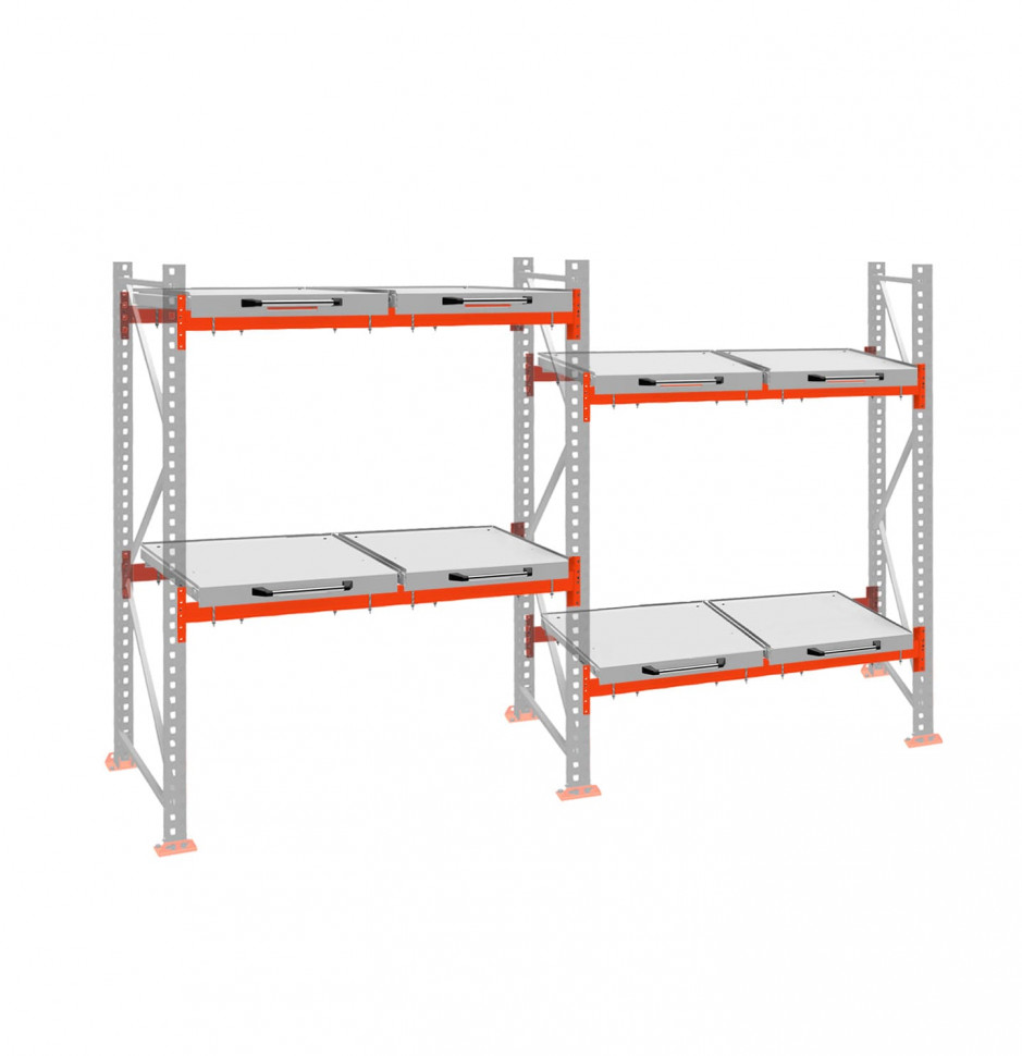 Стеллаж с выкатными платформами ДиКом 3000х3600х1000 на 2 яруса П-90