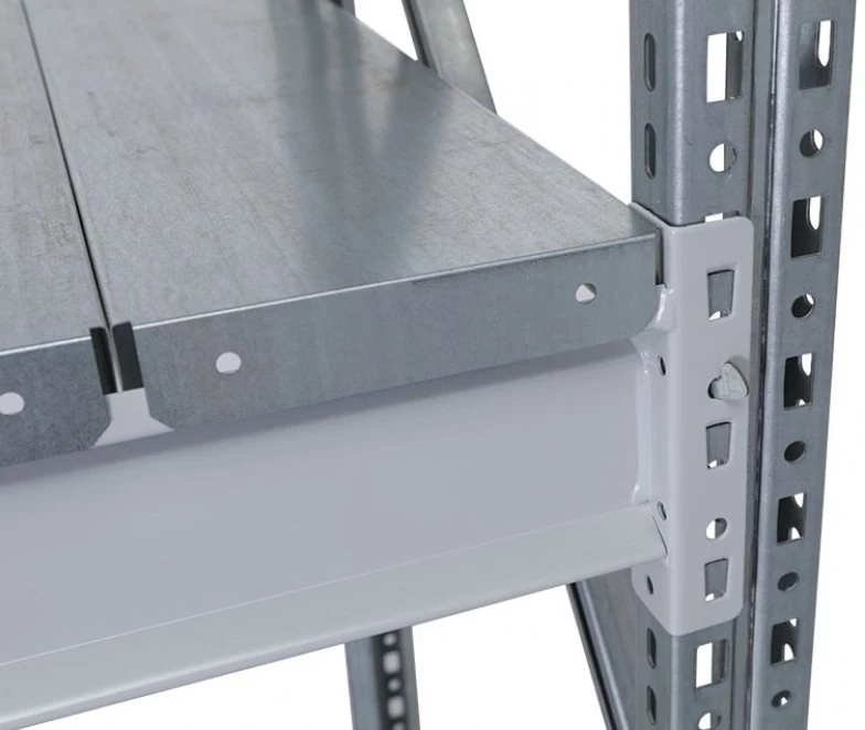 - Служит не только полкой, но и дополнительной стяжкой для предотвращения деформации стеллажей.