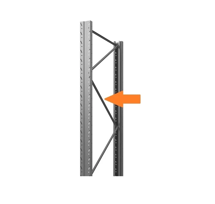 - Устойчивость: благодаря болтовому креплению раскос обеспечивает надежную фиксацию и жесткость стеллажной конструкции.