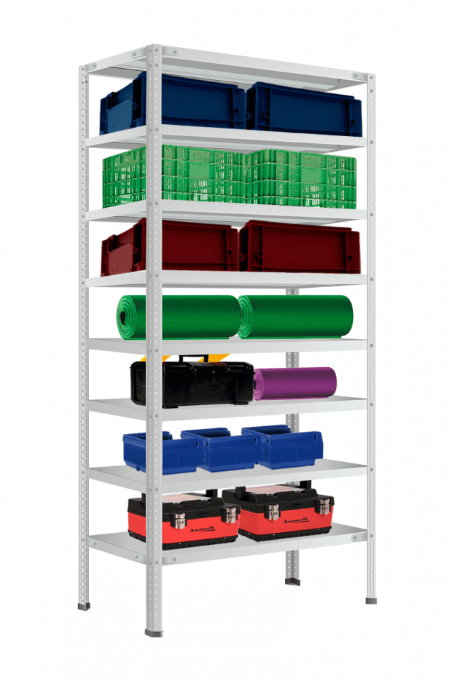 Данная модель представляет собой стальной стеллаж с повышенными нагрузочными способностями, созданный для эффективного и удобного хранения различных товаров и грузов в самых разных помещениях: архивах, библиотеках, складах, гаражах и т. д.