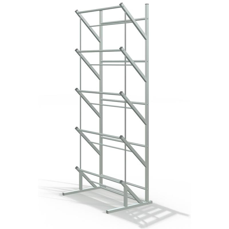 Полки стеллажа расположены под оптимальным углом, что облегчает размещение и извлечение бутылей. Кроме того, стеллаж оснащён подпятниками, которые предотвращают повреждение напольного покрытия при перемещении и гарантируют устойчивость конструкции.