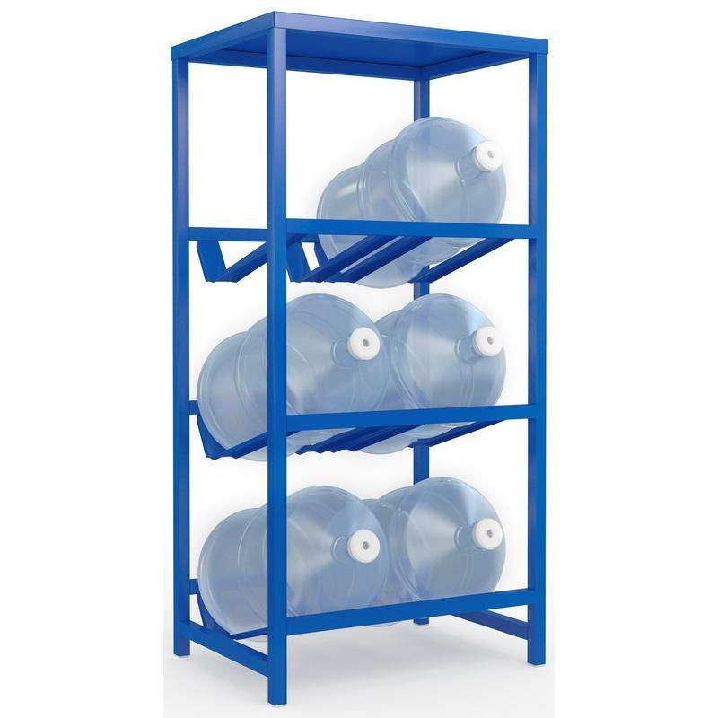 Металлический Стеллаж для воды Бомис-6П на 6 бутылей 19 л, синий - идеальное решение для хранения бутилированной воды 19 литров в доме, офисе или на складе. Благодаря компактным размерам, он занимает минимум места и обеспечивает удобный доступ к воде.