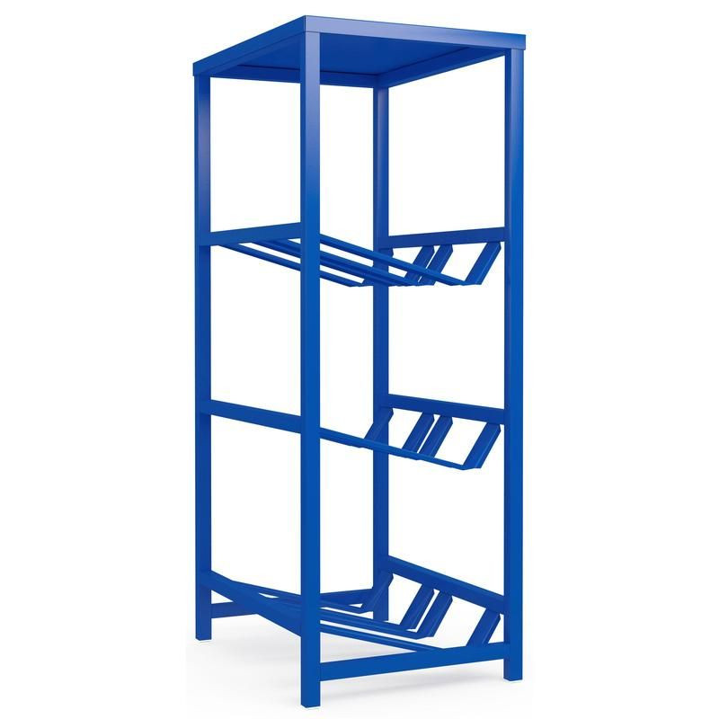 Полки стеллажа расположены под оптимальным углом, что облегчает размещение и извлечение бутылей. Кроме того, стеллаж оснащён подпятниками, которые предотвращают повреждение напольного покрытия при перемещении и гарантируют устойчивость конструкции.