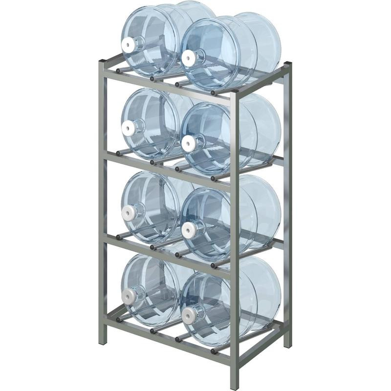 Металлический Стеллаж Бомис-8Л для 8 бутылей 19 л - идеальное решение для хранения бутилированной воды 19 литров в доме, офисе или на складе. Благодаря компактным размерам, он занимает минимум места и обеспечивает удобный доступ к воде.