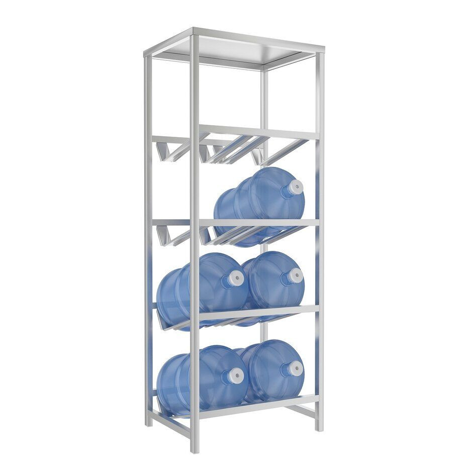 Металлический Стеллаж для воды Бомис-8П на 8 бутылей 19 л, металлик - идеальное решение для хранения бутилированной воды 19 литров в доме, офисе или на складе. Благодаря компактным размерам, он занимает минимум места и обеспечивает удобный доступ к воде.