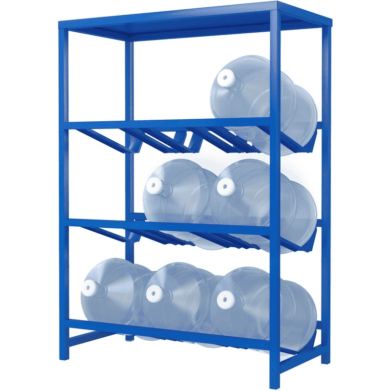 Металлический Стеллаж для воды Бомис-9П на 9 бутылей 19 л, синий - идеальное решение для хранения бутилированной воды 19 литров в доме, офисе или на складе. Благодаря компактным размерам, он занимает минимум места и обеспечивает удобный доступ к воде.