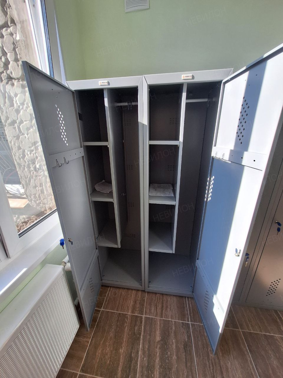 Этапы выполнения работ: Мы изучили потребностей заказчика и особенностей помещений детского сада. Разработали проект размещения шкафов. После согласования с заказчиком шкафы были доставлены, собраны и установлены на местах с учетом санитарных норм и требований безопасности.