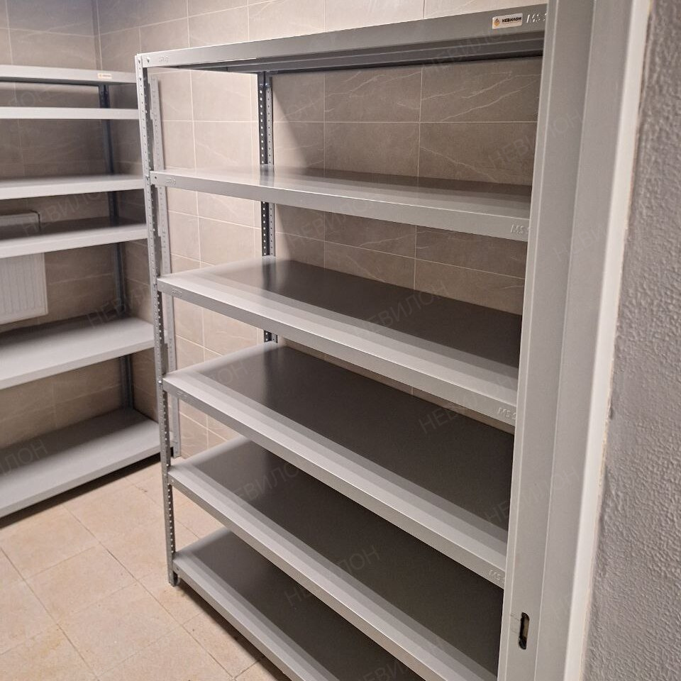 Этапы выполнения работ: Установлены прочные стеллажи MS Strong с болтовым соединением и регулируемыми полками. Это позволило адаптировать конструкции под формат архивных папок, коробок и другого инвентаря. Антикоррозийное покрытие и грузоподъёмность до 140 кг на полку гарантируют долговечность и безопасность эксплуатации.