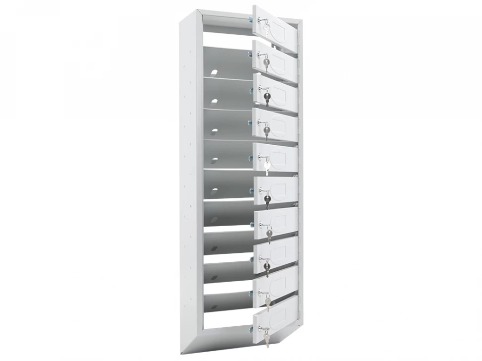 - Каждая из 10 секций имеет дверь с ключевым замком, что гарантирует безопасность вашей почты (в комплекте два ключа).