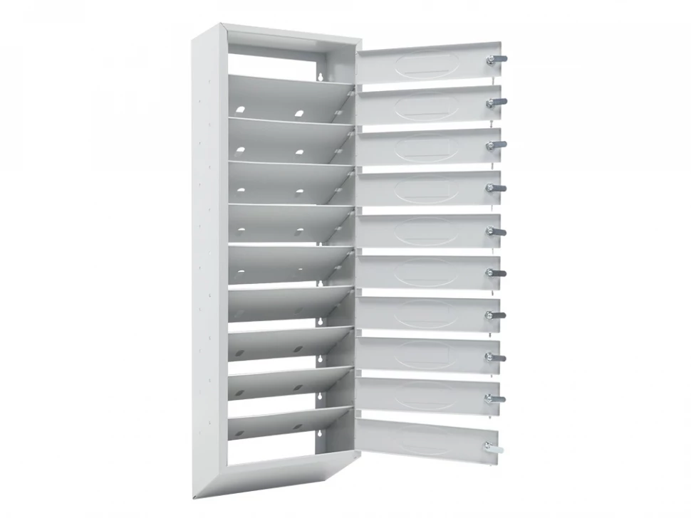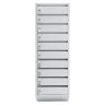 Параметр Значение Высота, мм 1142 Ширина, мм 383 Глубина, мм 186 Вес: 10.7 кг Тип установки настенный Тип замка Ключевой Производство ПРАКТИК Цвет: светло серый Шагрень (RAL 7035) Тип покрытия: Порошковое Гарантия 1 год Количество дверей (секций) 10