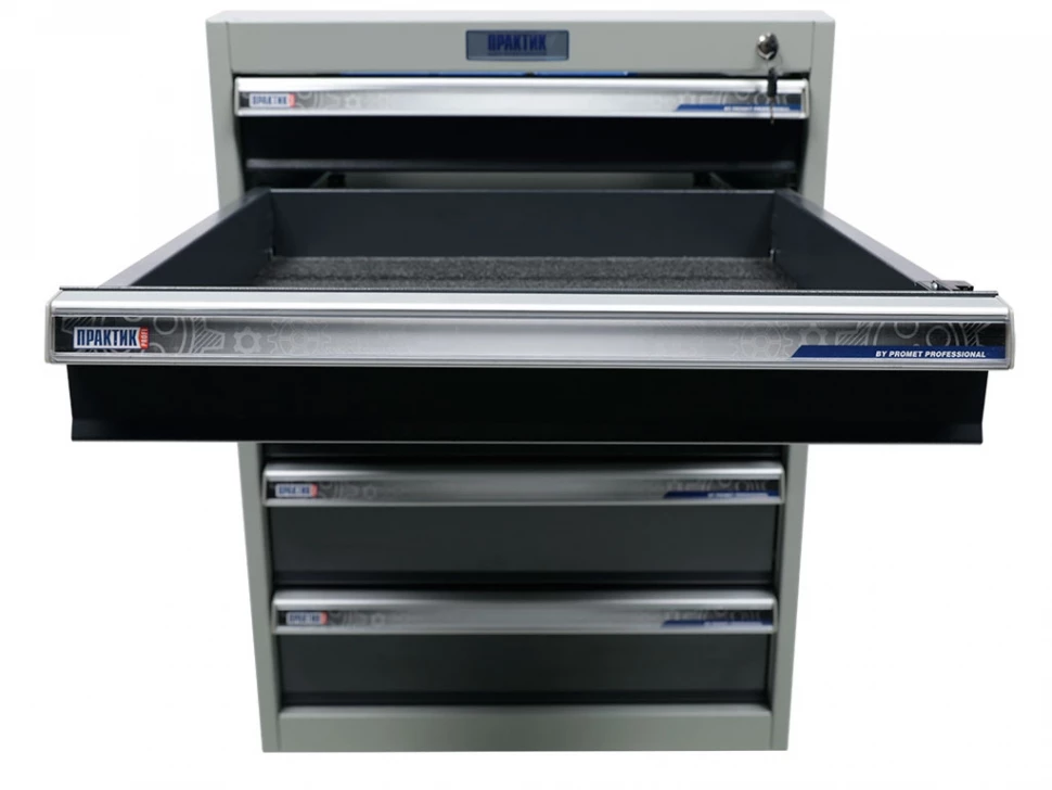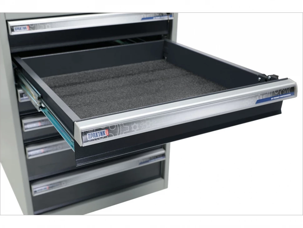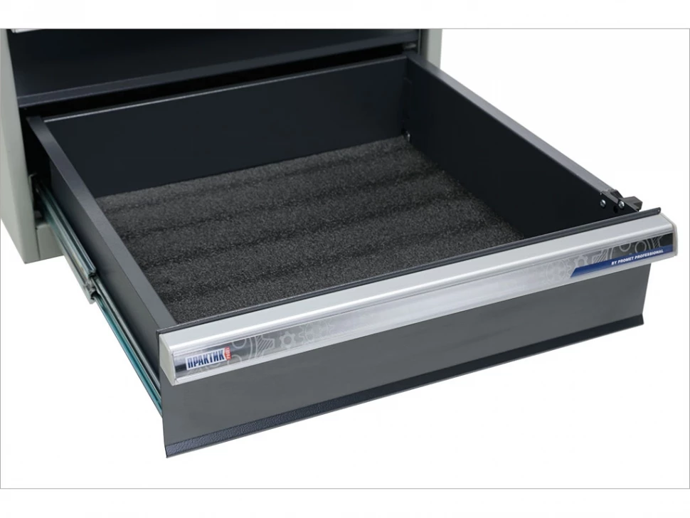 - Ящики оснащены качественными телескопическими направляющими и удобными ковриками для предотвращения скольжения инструментов.