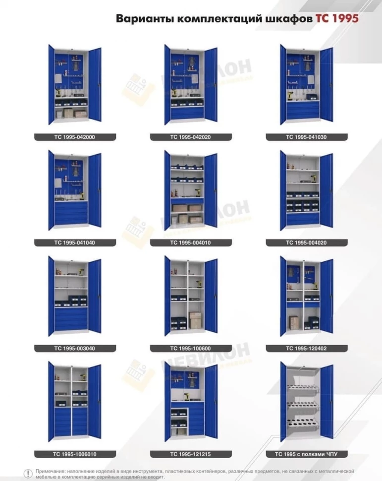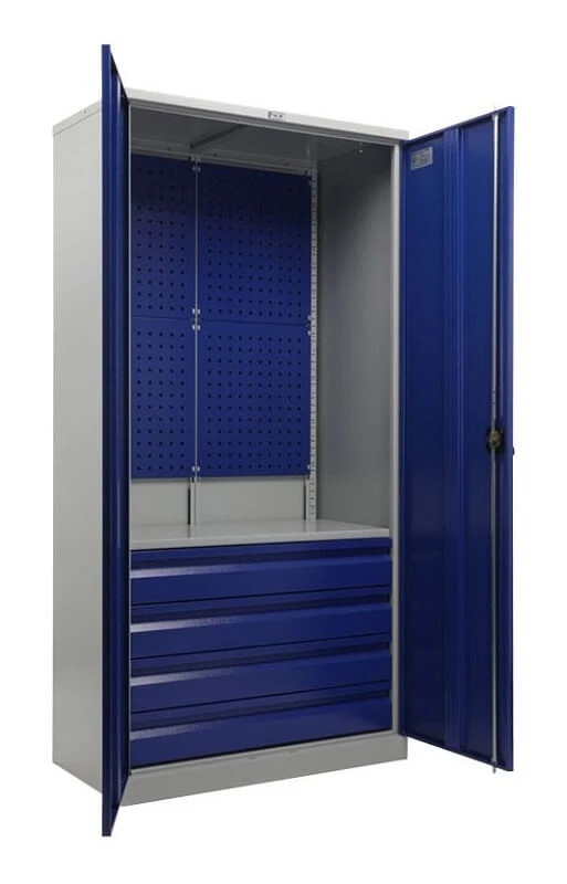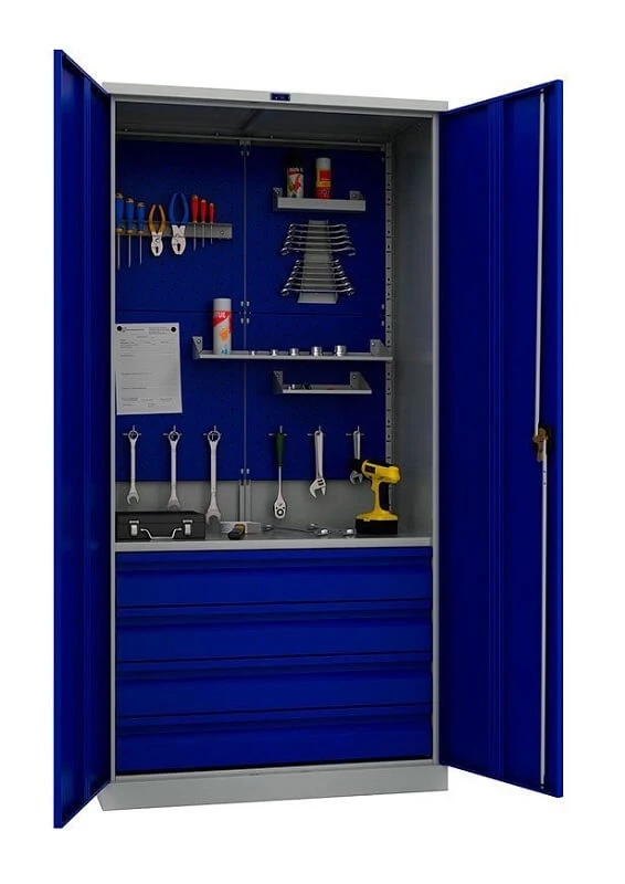Параметр Значение Высота, мм 1900 Ширина, мм 950 Глубина, мм 500 Вес: 54 кг Гарантия 1 год Производство ПРАКТИК Цвет: серый полуматовый (RAL 7038), двери синие (RAL 5002) Тип покрытия: Порошковое Количество полок для инструмента 1 Количество выдвижных ящиков для инструмента 4 Наличие перегородки нет Модель TC-1995 Код промышленной продукции по ТН ВЭД ЕАЭС 940310 Код промышленной продукции по ОК 034 – 2014 (КПЕС 2008) 31.01.11.129 - Документация