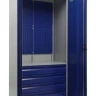- Современный дизайн с серым полуматовым цветом (RAL 7038) и яркими синими дверями (RAL 5002), что придаёт шкафу стильный вид.