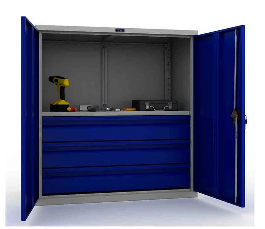 Параметр Значение Высота, мм 1000 Ширина, мм 950 Глубина, мм 500 Вес: 35 кг Гарантия 1 год Производство ПРАКТИК Цвет: серый полуматовый (RAL 7038), двери синие (RAL 5002) Тип покрытия: Порошковое Количество полок для инструмента 1 Количество выдвижных ящиков для инструмента 3 Наличие перегородки нет Модель TC-1095 Код промышленной продукции по ТН ВЭД ЕАЭС 940310 Код промышленной продукции по ОК 034 – 2014 (КПЕС 2008) 31.01.11.129 - Документация