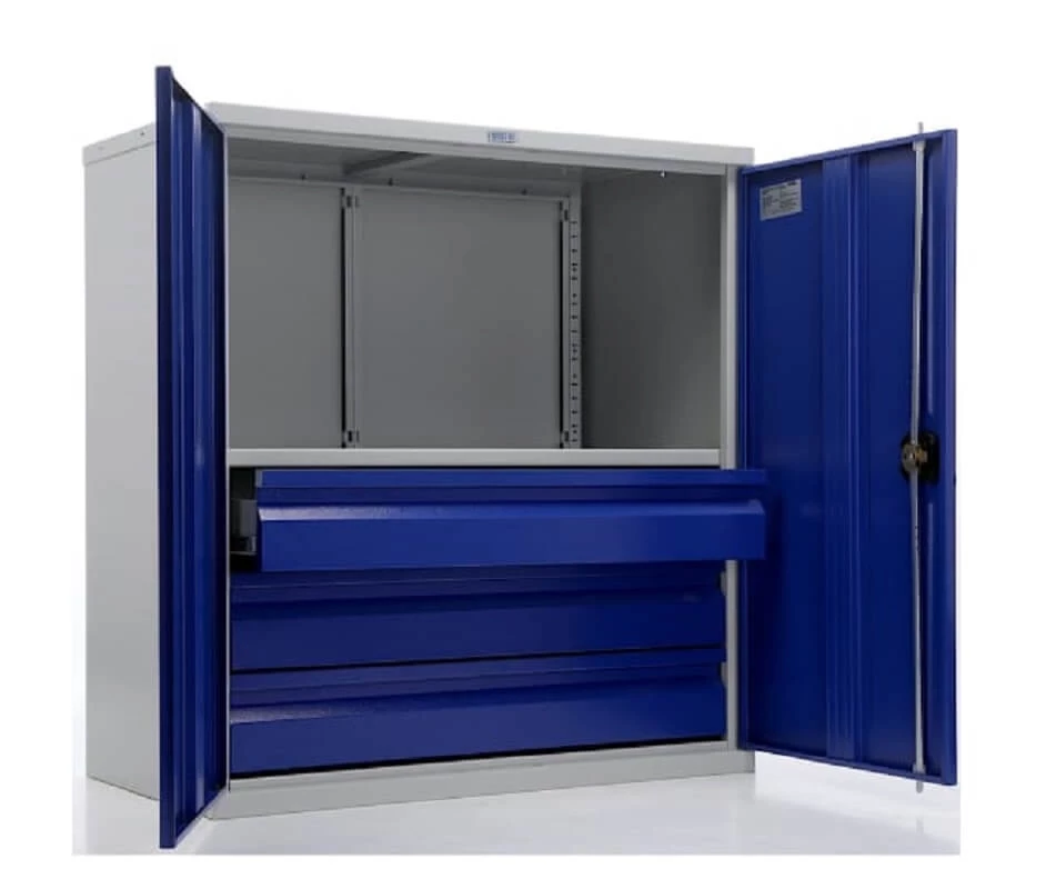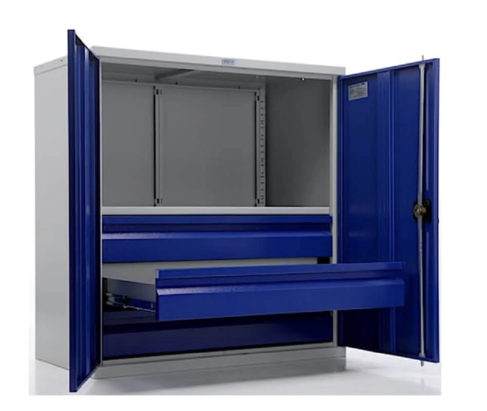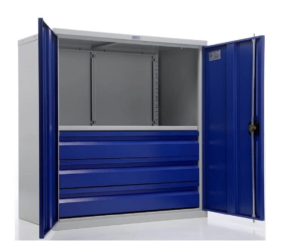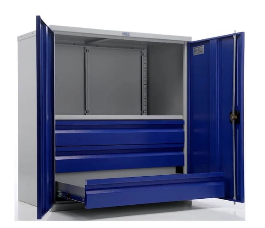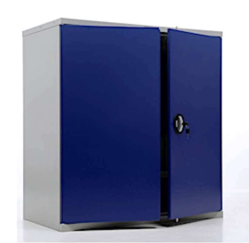 - Прочная конструкция из металла с серым полуматовым покрытием (RAL 7038) и яркими синими дверями (RAL 5002);