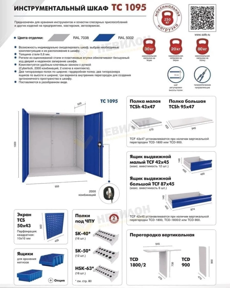 Чтобы приобрести Шкаф инструментальный ТС 1095-001030, достаточно посетить наш сайт. Нажмите на кнопку «Купить в 1 клик» и заполните форму с вашими контактными данными. Мы оперативно свяжемся с вами для уточнения оплаты и доставки. Способы расчета включают банковскую карту, безналичный расчет для юридических лиц и наличные при получении в Санкт-Петербурге. Доставка осуществляется по всей территории России, стоимость можно уточнить по горячей линии или в мессенджерах. Крупные заказы доставляем бесплатно!