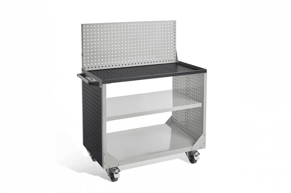- Компактные размеры (высота 1417 мм, ширина 1028 мм, глубина 606 мм) позволяют тележке удобно вписаться в любое рабочее пространство.