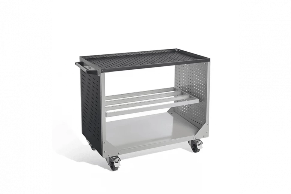 - Компактность: размеры тележки (высота — 967 мм, ширина — 1028 мм, глубина — 606 мм) позволяют удобно размещать её в ограниченных пространствах.