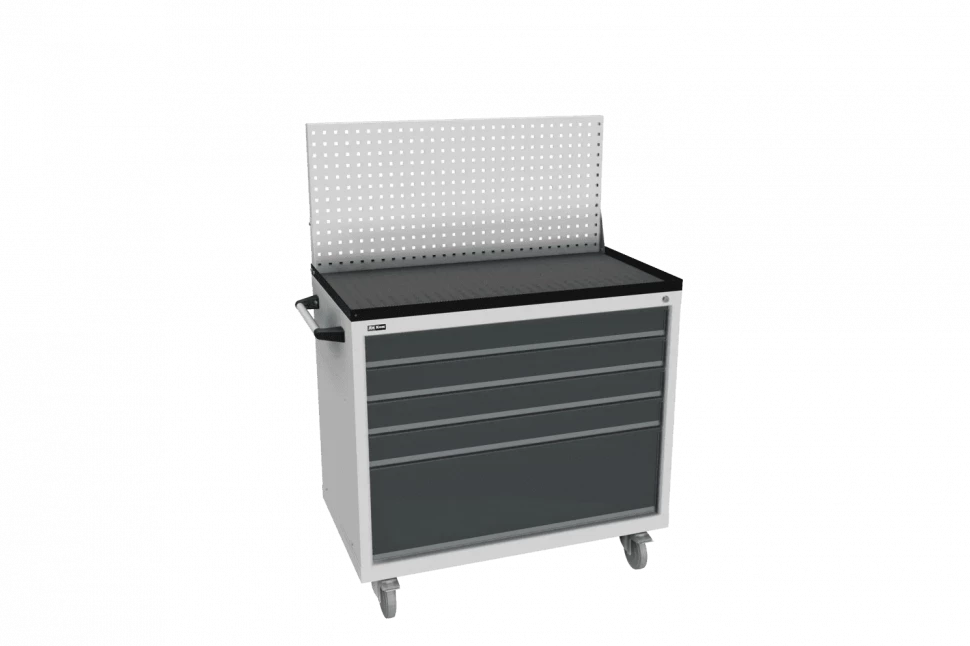 Параметр Значение Высота, мм 1441 Ширина, мм 1024 Глубина, мм 600 Вес: 87.55 кг Материал колес: Резина маслобензостойкая Тип колес Поворотные Выдвижение ящиков 100% Мобильность Передвижные Шаг перфорации экрана 35 мм Система запирания Общая Тип дверей раздвижные Диаметр колеса, мм 125 Максимальная нагрузка 1500 кг Материал ящиков Металл Тип корпуса Сварной Гарантия 3 года Производство ДиКом Цвет: RAL 7038 (агатовый серый) , RAL 7016 (антрацитово-серый) Тип замка Ключевой Количество ящиков 5 Комплектация Корпус тумбы, 5 ящиков, колеса, лоток, экран, боковая ручка Максимальная нагрузка на ящик, кг 60 Предназначены для гаража, мастерской, производства Модель ВЛ - Документация