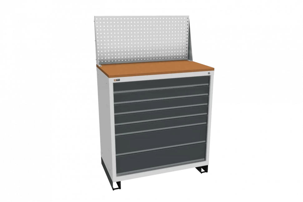 - Семь просторных ящиков с максимальной нагрузкой 60 кг каждый обеспечивают удобный доступ к инструментам.