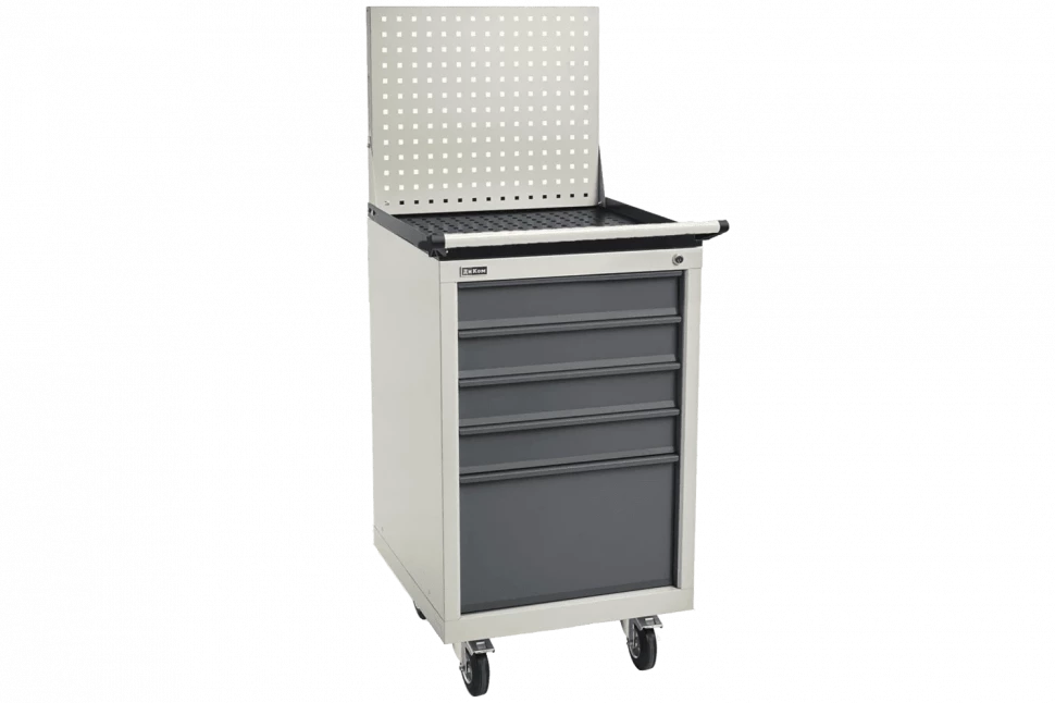 - Мобильность: Поворотные колеса с диаметром 125 мм и маслобензостойкой резиной позволяют без усилий перемещать тумбу по любому покрытию.