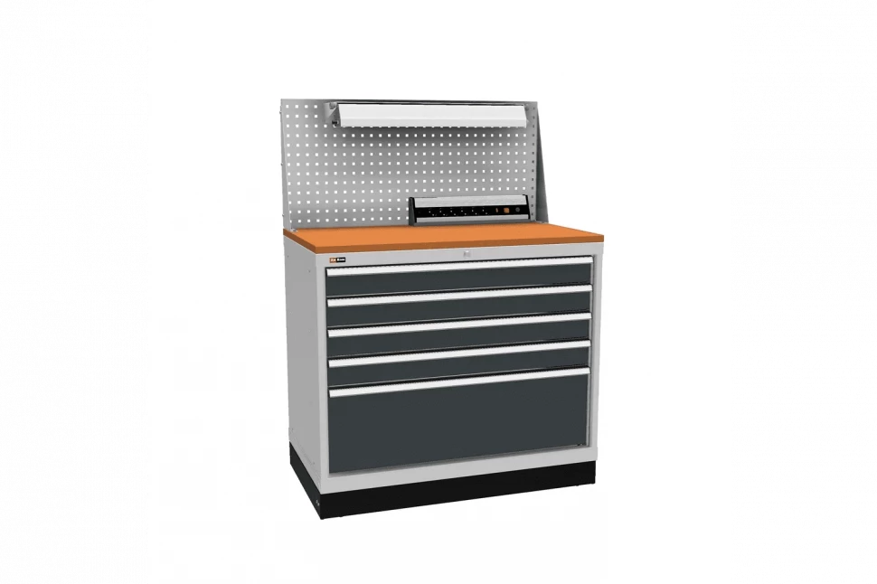 - Гибкость в использовании: 5 ящиков (h100, h100, h100, h100, h300) обеспечивают возможность раскладки инструментов по размеру и назначению.
