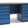 - В стандартный комплект входят: столешница, верстачная опора, соединенные между собой задняя стенка и полка, 2 тумбы.