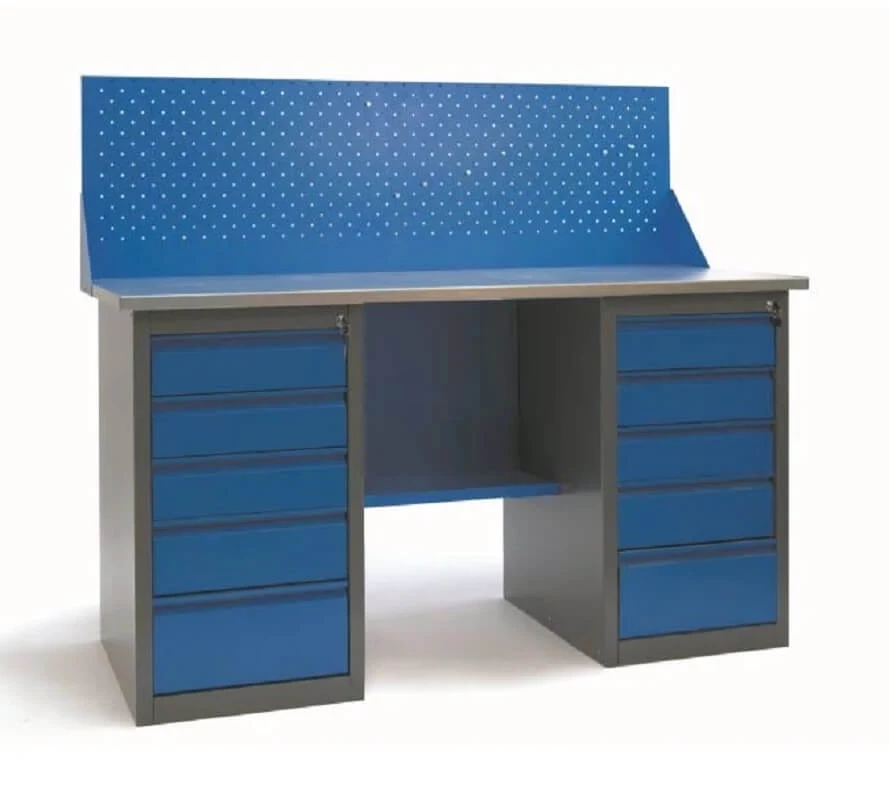 Компактный, модульный верстак двухтумбовый серии ВД2-1.9 используется для проведения сборочных, столярных, слесарных и ремонтных работ. Модель идеально подходит для гаражей, бытовок, мастерских, боксов,а так же для учебных заведений. Благодаря легкой сборной конструкции верстак можно использовать и в других целях, например установив его на балкон. Благодаря прочной и надежной конструкции из металла верстаки можно размещать в помещениях с повышенной влажностью, так же они устойчивы к перепадам температуры и механическим повреждениям.