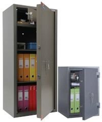 - Офисные сейфы. Модели с увеличенной вместимостью и дополнительной защитой для корпоративных документов и наличных.
