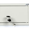 - Стильный серый цвет с эффектом молотковой эмали делает сейф привлекательным элементом интерьера.