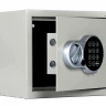 - Компактные размеры: с весом всего 6 кг и объемом 13 литров, сейф легко разместить в шкафу, тумбе или на столе.