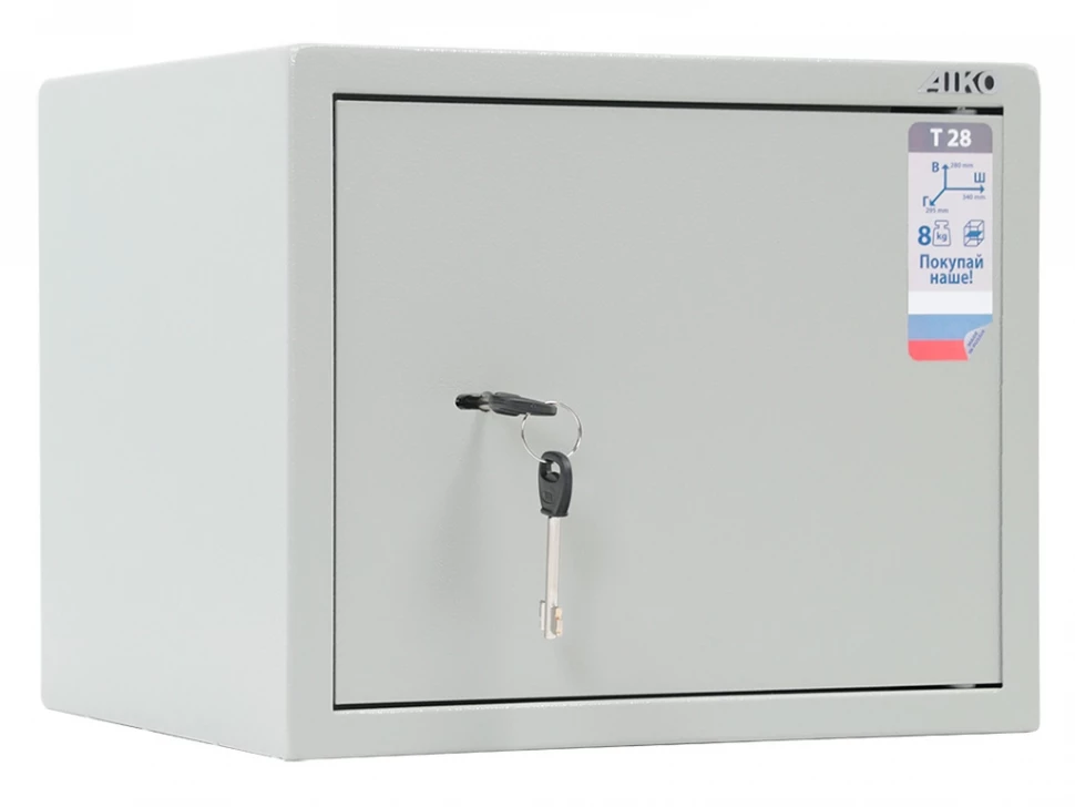 Сейф Aiko T-28 — надежное решение для хранения небольших ценностей, документов и личного огнестрельного оружия. С габаритами 280x340x295 мм и весом всего 8 кг этот компактный сейф легко разместить в тумбе или шкафу. Изготовленный из стали с усиленной дверцей толщиной 2,8 мм, он обеспечивает базовую защиту и сохранность ваших вещей.