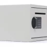 - Легкий вес (6 кг) и компактные размеры позволяют легко перемещать сейф или крепить его к стене или полу с помощью предусмотренных отверстий.