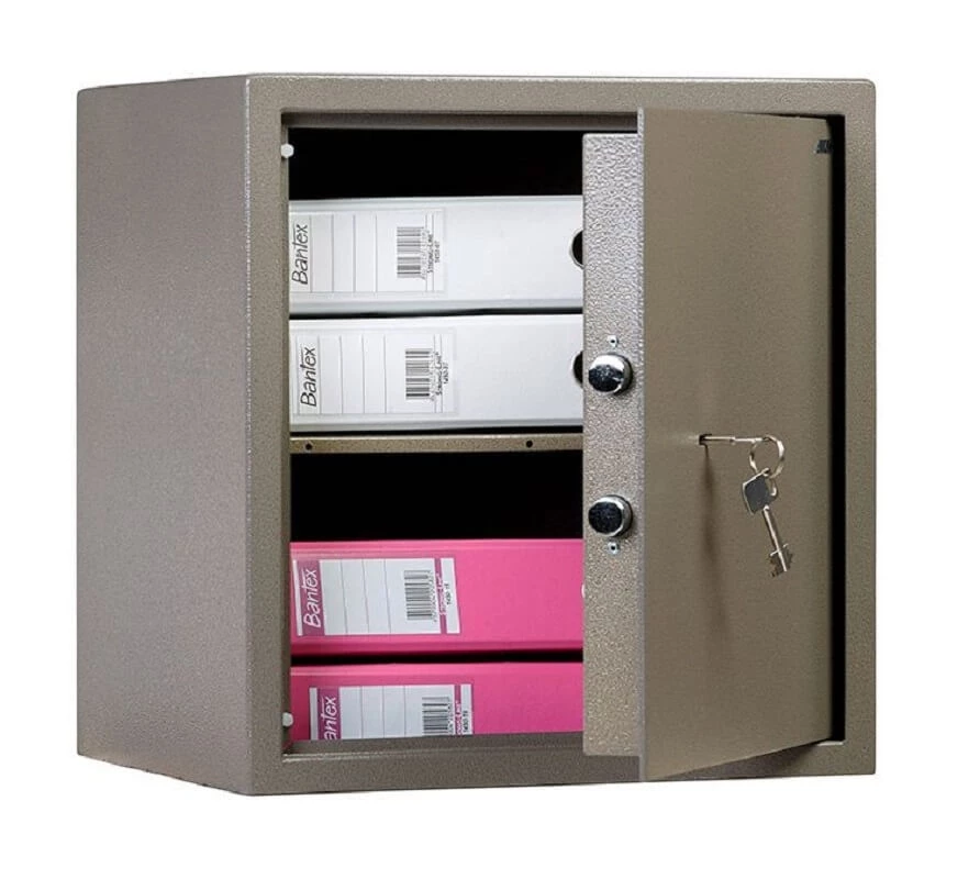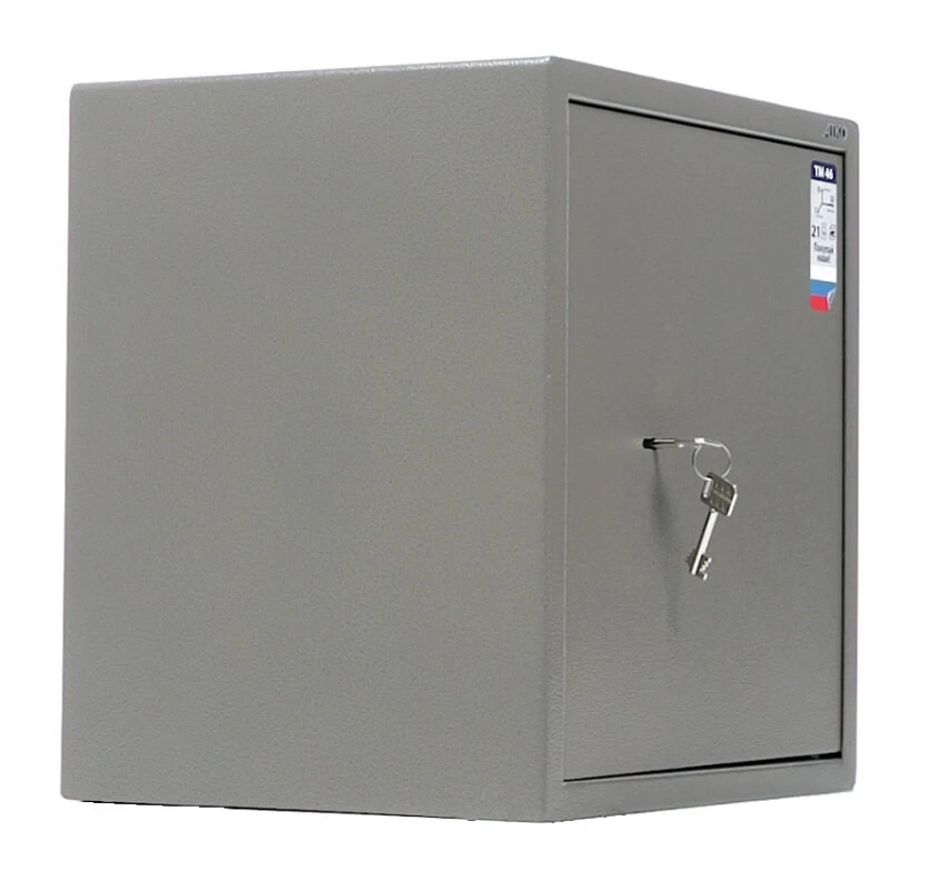 - Объем 60 литров позволяет размещать как документы, так и ценности: рекомендуется хранить до 50 тыс. руб. наличными для физлиц.